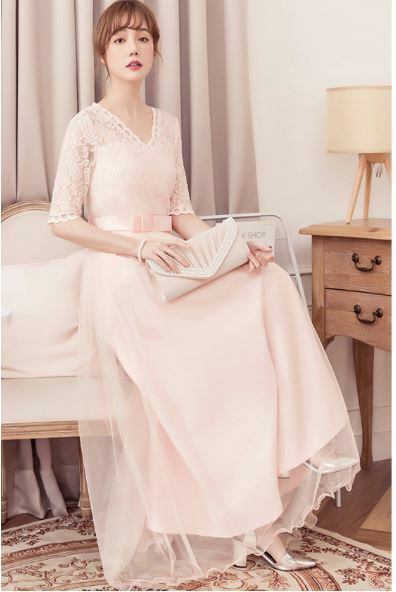透け感あるレース袖が大人可愛いロングワンピース♪