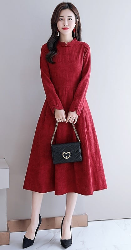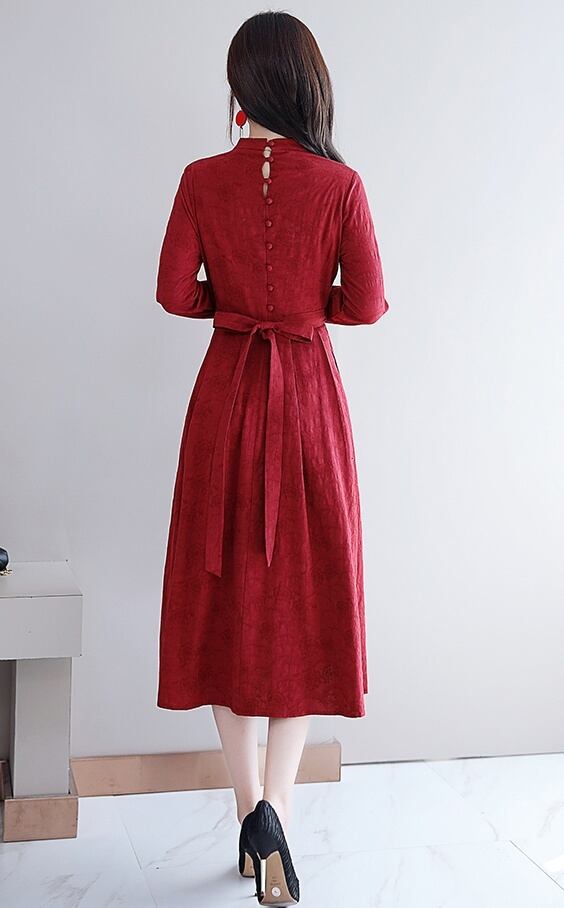 深みのあるワインレッド色と、腰のバックリボンが大人可愛い。