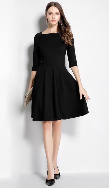胸元が開き過ぎる心配もなく、またミディアム丈なのでとても品のあるデザインです。