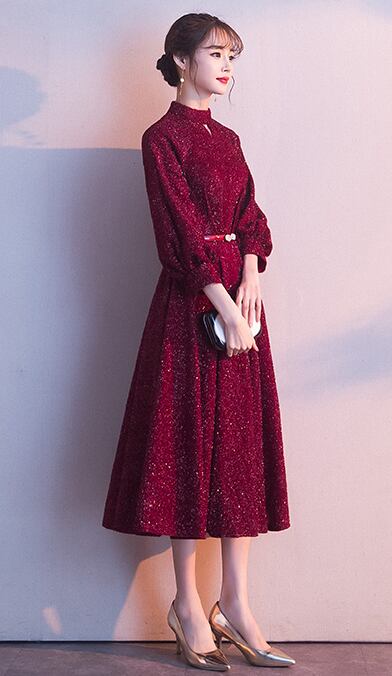 キラキラとラメが輝くバルーンスリーブのふんわりワンピース。