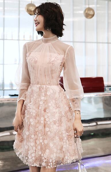 チュール素材のバルーンスリーブやハイネックが適度な透け感を演出し、エアリーな印象に☆