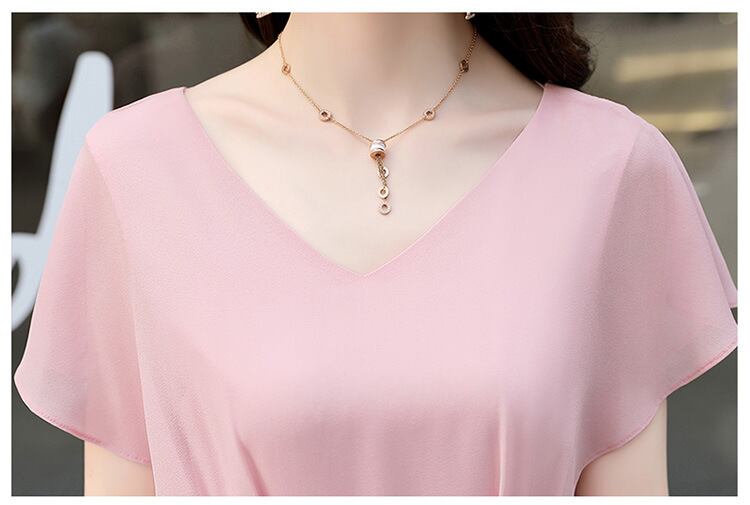 スッキリとしたVネックで凛とした大人の女性を演出☆ホワイト、ピンク、ブラックの3色展開。