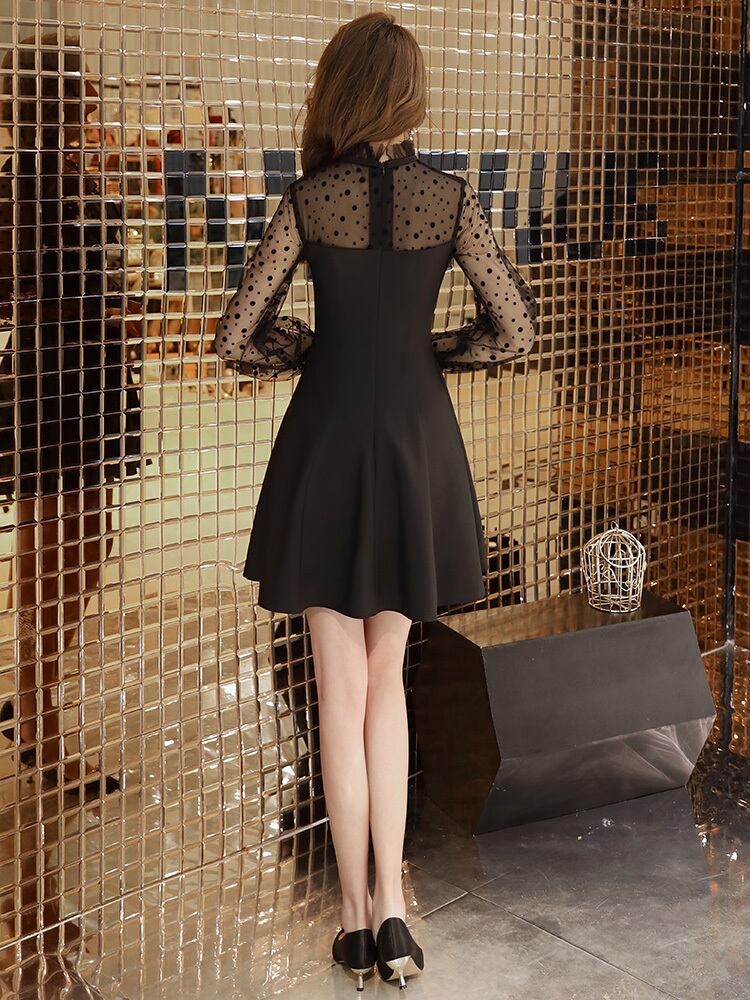 胸元のリボンが印象的で上品なブラックのワンピース。