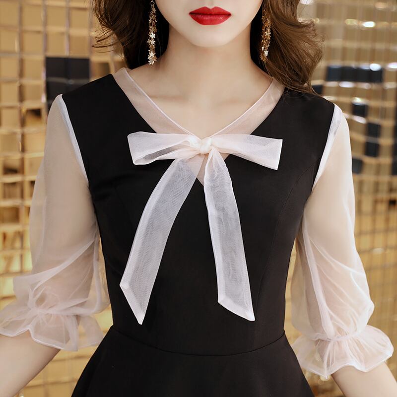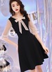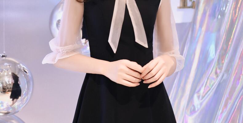 胸元のリボンと透け感のあるバルーンスリーブがキュートなワンピース。
