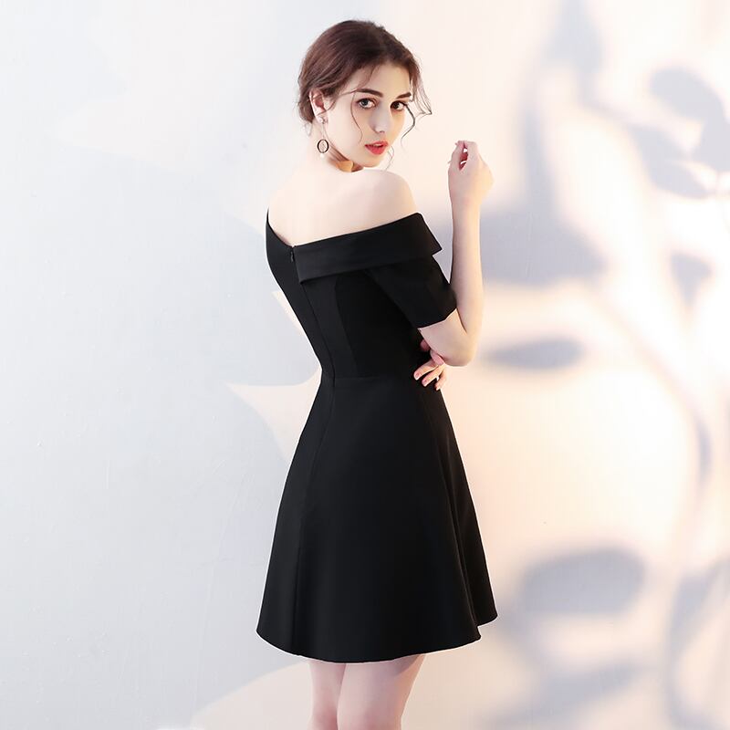 アシンメトリーな胸元がちょっぴりセクシーな膝上丈のワンピース。