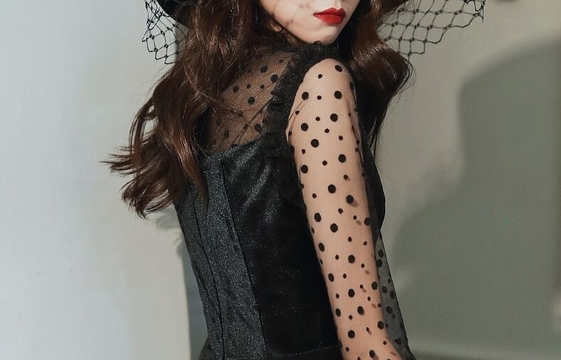 透け感のある、水玉フリル袖が二の腕をカバー◎