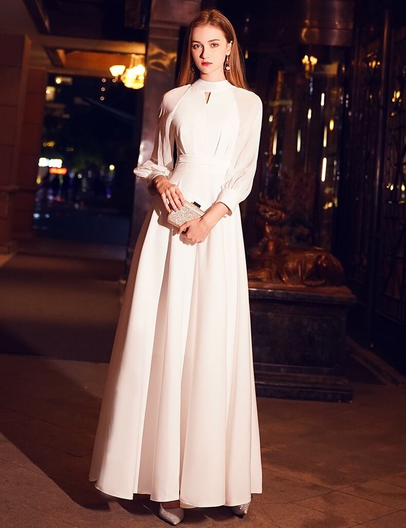 凛としたスタンドカラーが非常にエレガントなロングドレスです。
