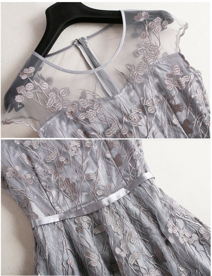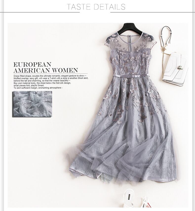 花柄の刺繍があしわられた、上品なミディ丈ワンピースです。