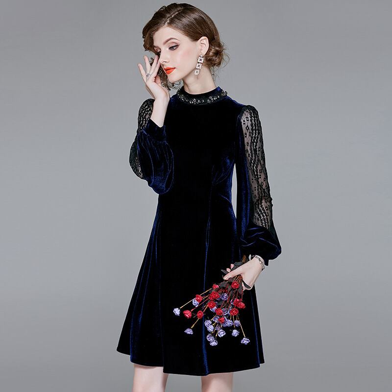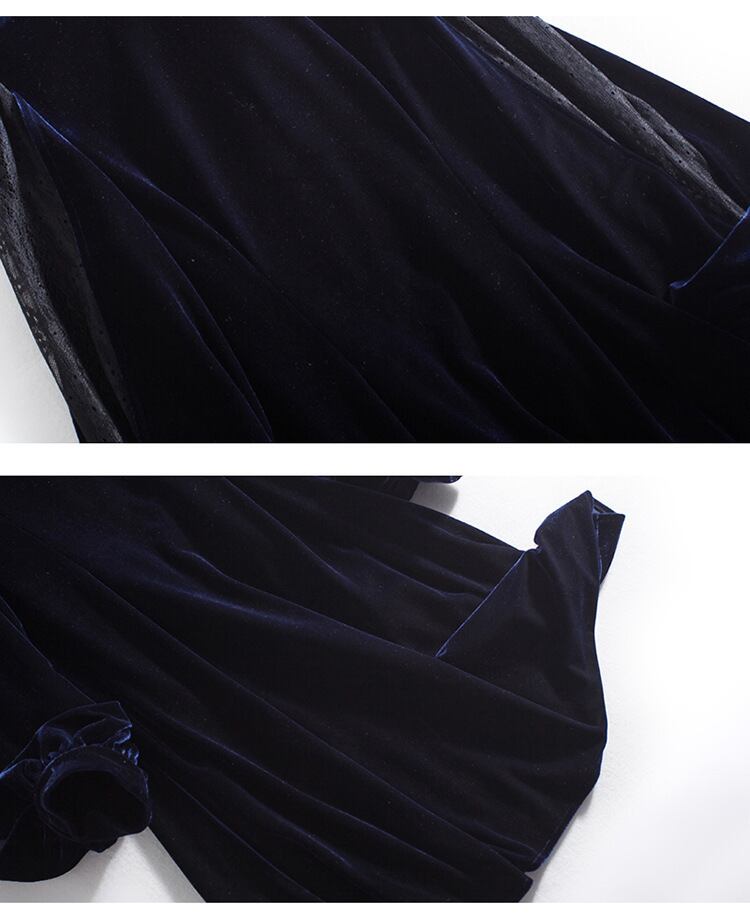 吸い込まれそうな深い蒼。ベルベットの高級感あふれるワンピースドレスです。