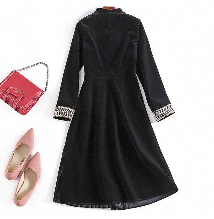 凛としたスタンドカラーの、気品あふれるベロアワンピースです。