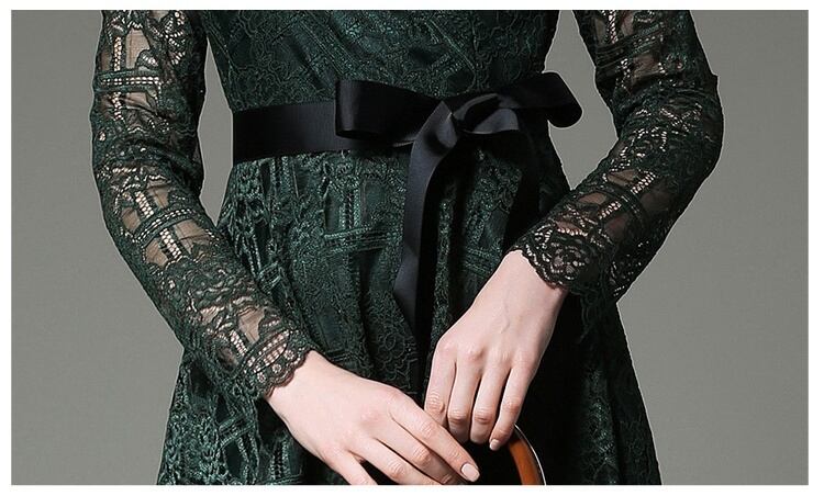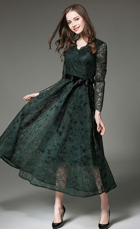 深いグリーンが美しい!総レースのミモレ丈ワンピースです。