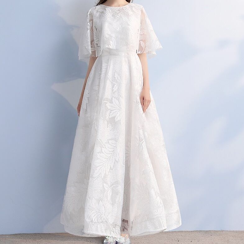 まるで天使が舞い降りたような、純白のロングドレスです。