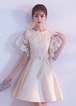高級感のあるサテンのスカートと、刺繍レースの組み合わせがエレガントなパーティードレスです。