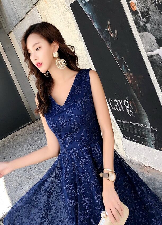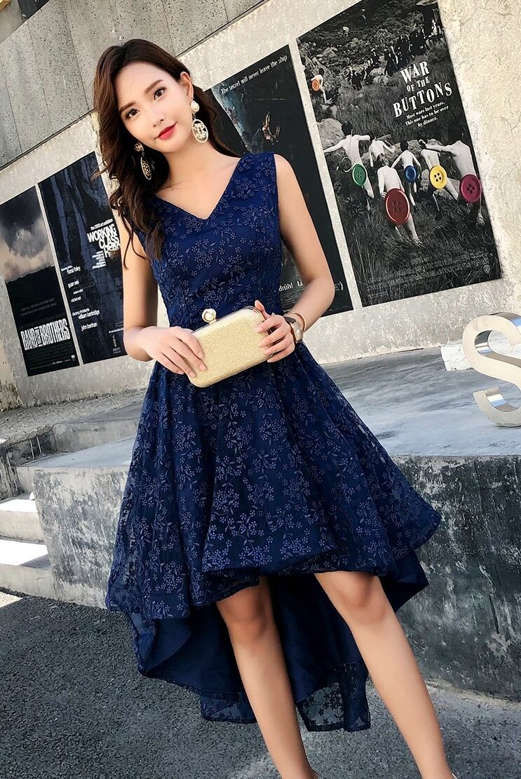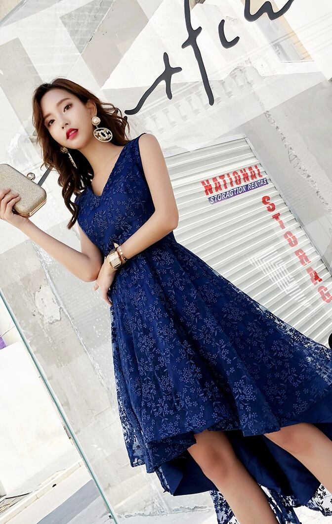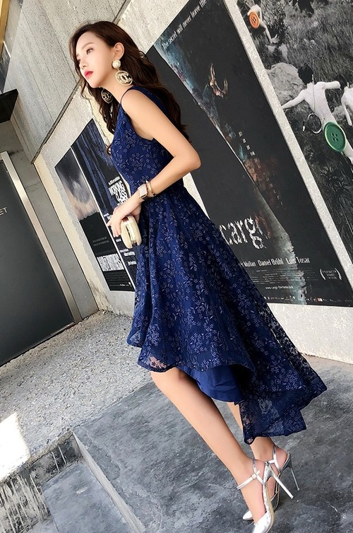 吸い込まれそうな深いネイビーの色味が非常に美しいパーティードレスです。