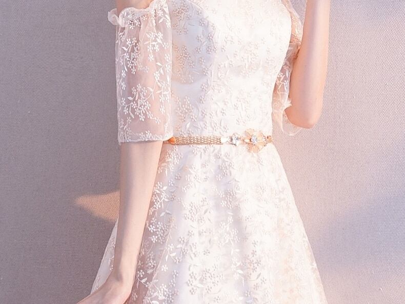ウエスト部分には、ゴールドのアクセサリーベルトがキラリと光ります。