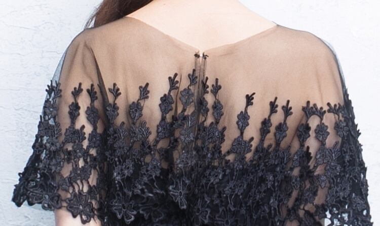 花の刺繍が施されたレースがとってもエレガントなイブニングドレスです。