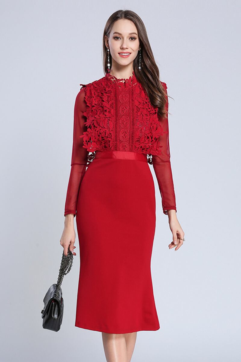 鮮やかなレッドが眩しい!周りの目を引きつけるマーメイドワンピースです。