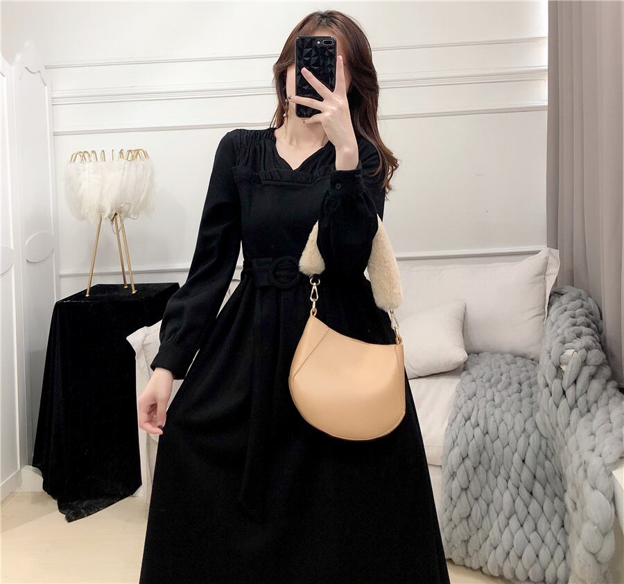 大きめのベルト付きでちょっぴりレトロな雰囲気のミモレ丈ワンピースです。