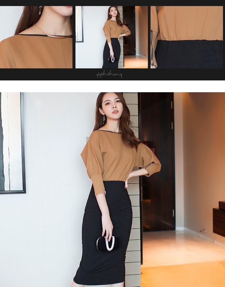 大人の魅力漂う、バイカラーのタイトワンピースです。