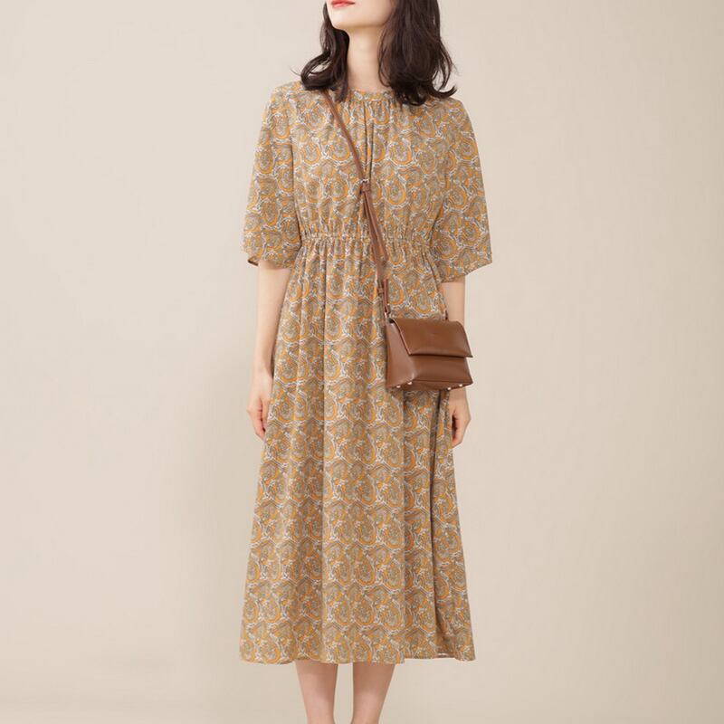 オリエンタルな雰囲気が漂う総柄のレトロなワンピースです。