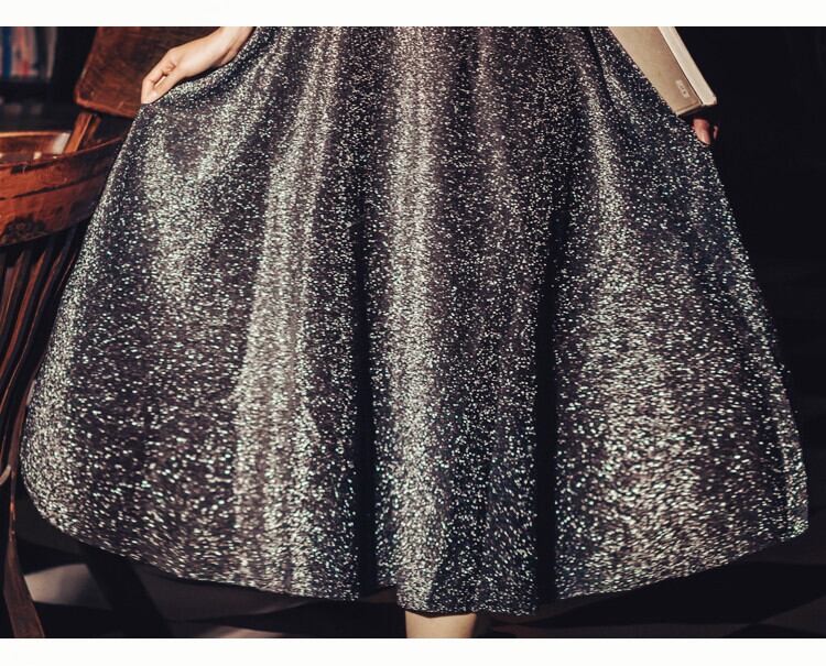 キラキラした糸が織り込まれた生地で、ゴージャスなのに派手になり過ぎず、シックに決まる1枚です。